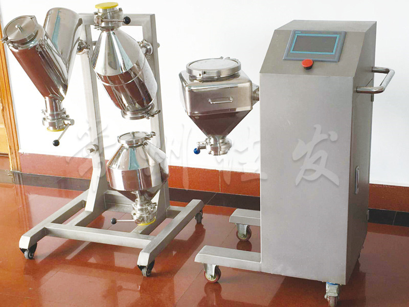 本機是我司廣泛吸收、消化國外技術(shù),結(jié)合國情研發(fā)成功的新機型。本機結(jié)構(gòu)合理,性能穩(wěn)定,操作方便,整機無死角,無外露螺釘?;剞D(zhuǎn)體(混合料斗)與回轉(zhuǎn)軸曲線成30度夾角,混合料斗中的物料隨回轉(zhuǎn)體時沿斗壁做切向運動,產(chǎn)生強烈的翻動和高速的切向運動,從而達到好的混合效果,采用PLC全自動控制,并設(shè)置防誤操作裝置的出料蝶閥,確保生產(chǎn)安全。物料可在同一容器中通過不同的工序段,不需要頻繁地轉(zhuǎn)料,加料等程序。有效地控制粉塵與交叉污染,減少物料的損失,控制物料的分層,優(yōu)化了生產(chǎn)工藝,符合藥品生產(chǎn)的GMP要求。